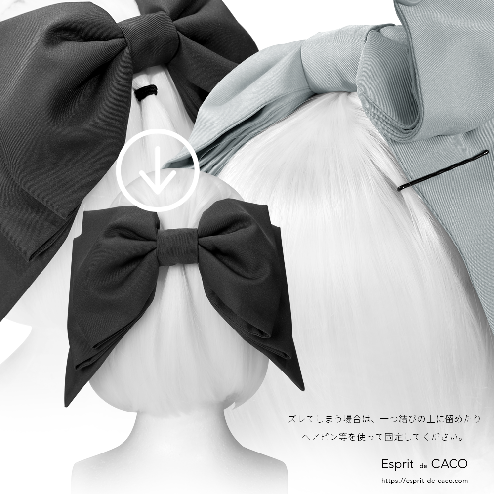内側のクリップで装着後、しっかりと固定する場合は画像のようにヘアピンなどで留めてください。